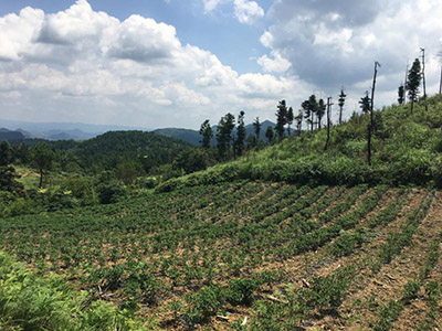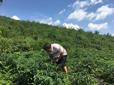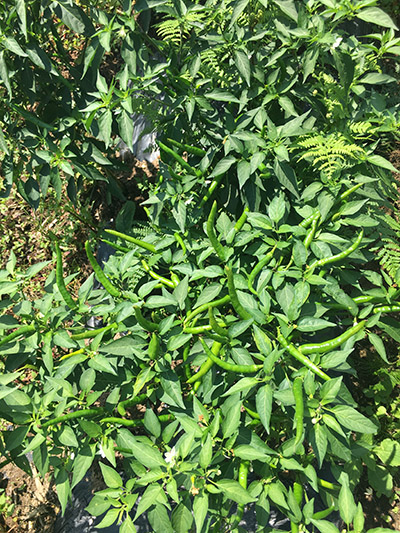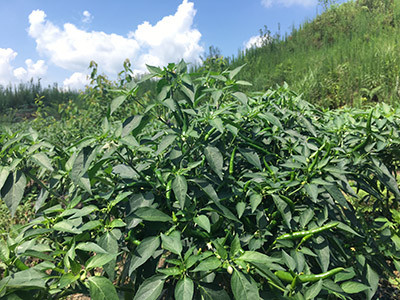 小谷龙辣椒专用肥示范基地效果,试用专用肥的朝天椒枝叶茂盛,果实丰厚,和没有施用的有鲜明对比。